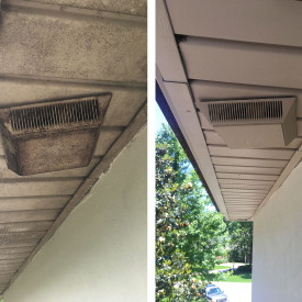 - Always do what’s best for you and your property. “Pressure washing” can be a misleading phrase. While we have top level pressure washing equipment, high pressure can cause irreversible damage to your property if used incorrectly. We use a low pressure “soft wash” in most cases in which we use the appropriate detergents and solvents to clean your property. Rather than just blasting away with high pressure which can damage wood, vinyl, stucco, and roofing materials, we use a very specific process to make sure the job is done correctly without causing damage.